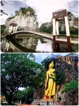 📸 Don't miss the cable-stayed bridge over the pond, the cliff face of Phu Pha Raet, and the standing Buddha statue.