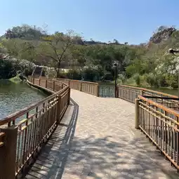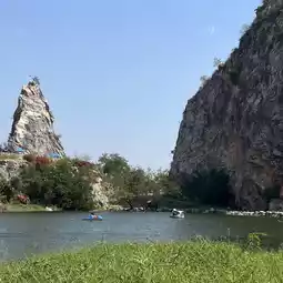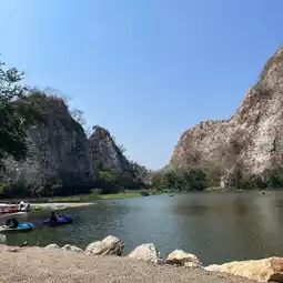 #TravelChat Khao Ngu Stone Park is a tourist attraction in Ratchaburi Province. It's a natural wonderland, surrounded by mountains, a large lake, and a long bridge. This spot is a must-see, as it's a landmark for photo opportunities and a perfect place to stroll and enjoy the atmosphere.