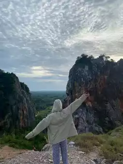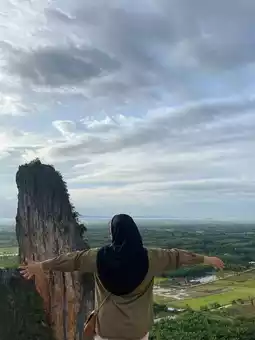 It was my first-ever trip to Songkhla, and I couldn’t miss the chance to visit "Khao Kuha." Located in Rattaphum District, near Phatthalung Province, it’s about an hour’s drive from Hat Yai. On the day of my visit, a storm was approaching. I planned to arrive early to catch the sunrise, but instead, I was greeted by a sea of mist, mountain views, and lush green fields. Was I disappointed? A little, but the atmosphere was beautiful in its own way. Unfortunately, I couldn’t stay long due to heavy rain and strong winds.