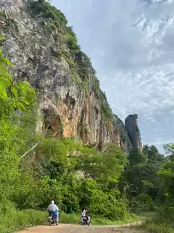 To get there, you can spot the mountain from the main road. Follow the route, and when you reach the first few intersections, stick to the paved road as there are no clear signs initially. As you get closer to the parking area, you’ll see clearer signs 🪧. It took me about 20 minutes to hike to the first viewpoint. This spot is already great for photos and not too crowded. From here, you can climb further up using ropes, as the path is steep and slippery.