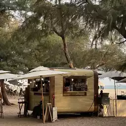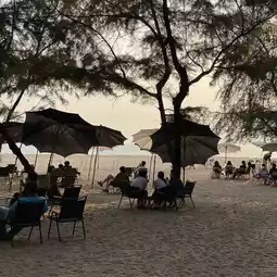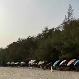 Most of the shops are locals who come to chill. There are pine trees along the beach. There's not a lot of trash here. I recommend going in the evening before the sun sets. ⛅️