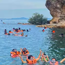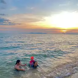 Another seaside trip. This time we went to Rayong beach. We stayed at Baan Pae Ville Rayong. It is a house with three houses next to each other and dogs are allowed to stay. The house is right next to the sea. Just walk a little bit and you will see the sea. We went to the sea during winter. The sea water is very clear. The private beach is not crowded at all. You can buy a trip to Koh Kham. We rented a private speedboat to go. The sea water at Koh Kham is very clear. There are no houses on Koh Kham. There are many places to stop and swim and take pictures. At the snorkeling spot, you can see Nemo and other fish. The coral is beautiful. When we returned to the house in the morning, we woke up to see the sunrise. It was very beautiful and impressive. 🙂 #Baan Pae Ville #Visit Rayong #Koh Kham