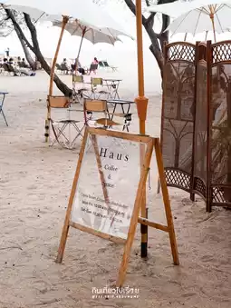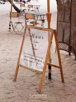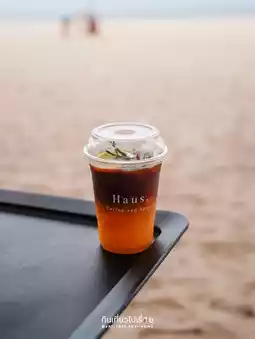 🚌 Haus Coffee is a cream-colored house on the beach. It opens at 7 am, and it's always crowded. I had to wait for almost half an hour. The reason why it takes so long is that they don't use electricity to make coffee. They focus on the slow bar, so the coffee is not too expensive, around 60-70 baht. They also serve grilled bread to fill your stomach.