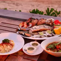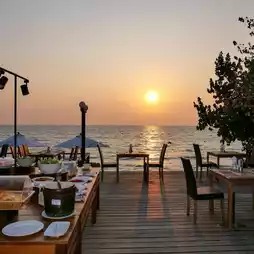 island's eco-resorts. The private sandy beach is wide and is the most beautiful spot to watch the sunset on the island.
