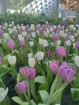 A winter flower garden in a temperature-controlled dome at 15-20°C