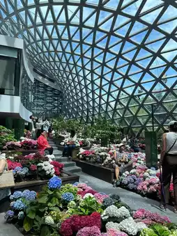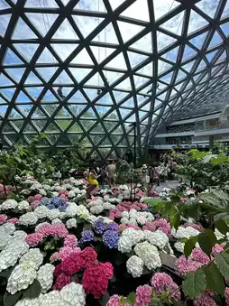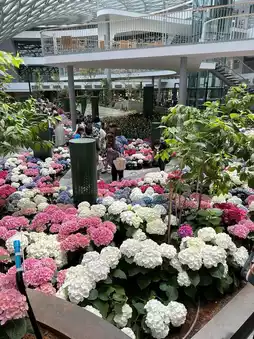 Anyone who visits Rayong right now, I must say that you really can't miss this place, which is the Flora exhibition hall, a winter flower garden. There are many different types of flowers here, whether it's tulips or hydrangeas. Everything is so beautiful under a modern, transparent building with sunlight coming in all the time. Right now, it's a popular place in Rayong. Anyone who visits Rayong, come take pictures with beautiful flowers. We must say that the atmosphere on the day we went might be a bit crowded. When taking pictures, you have to find an angle. But it's worth it. For anyone who likes to take their parents on trips, we think that your parents must be very happy because the flowers are really beautiful. #VisitRayong #BeautifulFlowers #Rayong #Refreshing