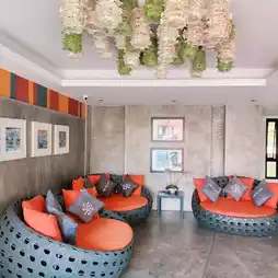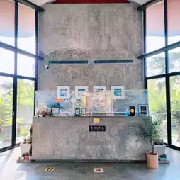 The hotel🏢 has a chic and colorful design, shady with trees 🌳 Most importantly, it is close to tourist attractions such as Saeng Chan Beach 🏝️, just a short trip away