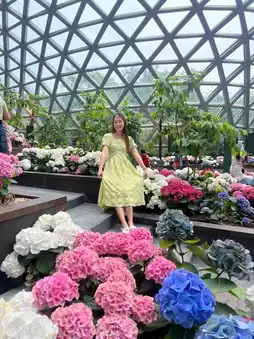 🌷 This is a large flower dome with air conditioning. The air inside is quite cold. If you are sensitive to the cold, bring a jacket. The flowers here are tulips in various colors. They are constantly changing. And right now, there are hydrangeas in various colors as well. It is very beautiful. For those who love taking pictures, you must come here. 📷