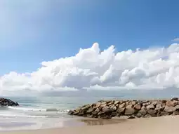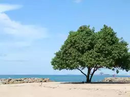 The uniqueness of this beach is that there is a crescent-shaped breakwater, connected together until it becomes a beautiful and strange shape that is unlike anywhere else.