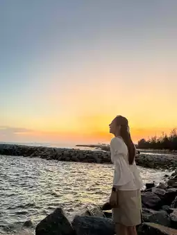 The hottest beach in Rayong right now, Laem Charoen Beach is a new landmark where teenagers and chillers like to come and enjoy the sea breeze. During the day, there are many cafes open for service, complete with props and great photo spots. In the evening, watch the sunset with the most beautiful light in Rayong. I must say it's the best.🌅 I recommend it.