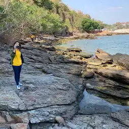 🌊 For general tourists, there is a nature trail that runs along the coast. The path is between the green forest and the rocks and sea. Looking far away, you will see many islands, such as Koh Kaew Phisadan (from the literature of Phra Aphai Mani), Koh Kham, etc. Along the nature trail, there are resting points where we can sit and take pictures or go down to take pictures on the rocks, which is beautiful in another way. But be careful not to slip. Some rocks are quite slippery. 🌊