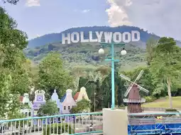 There are many beautiful photo corners. It feels like taking pictures abroad. There are popular spots for tourists to take pictures: the bridge over the river, the Hollywood sign, the windmill, and the colorful European buildings.