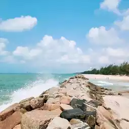 Saengchan Beach 🏖️ is a famous beach in Rayong Province. The highlight of the beach is the curved shape to prevent erosion by waves along the distance of more than 10 kilometers.