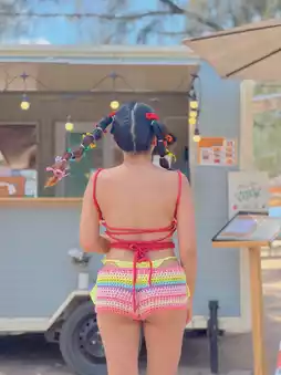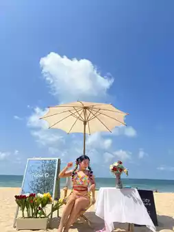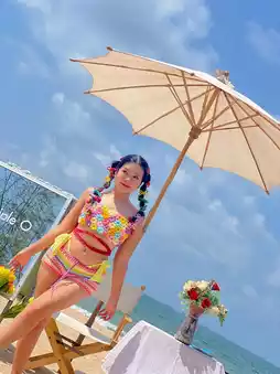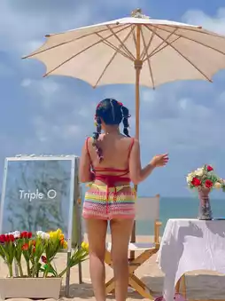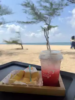 🌈🌤️✨ Don't miss checking in at the beachfront. There are rows of cafes lined up everywhere, so you can choose whichever one you want to go to. 💕 We chose Triple O coffee, which is adorable and eye-catching. ✨ The drinks and bread menu is incredibly cheap, ranging from 20-60 baht, so cheap it's shocking! 🤣 Cheap and delicious really does exist.