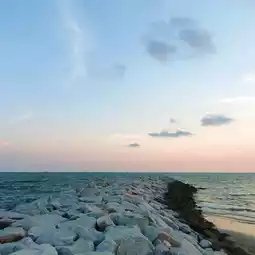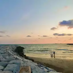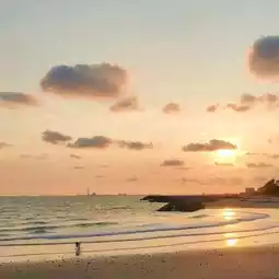 🌊🌊 This beach has a crescent-shaped breakwater that continues on to form a beautiful and unusual shape. You can watch the sunset beautifully. ❤️🩷💛