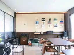 With the taste of coffee, I like when 2 passions come together. I like coffee and love music, so I was inspired to make a Recording studio style shop that is simple and luxurious, in a modern living room style, airy and comfortable. Listening to beautiful music from records