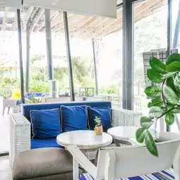 • Indoor zone in a cool air-conditioned room with seats by the glass to enjoy the sea view.