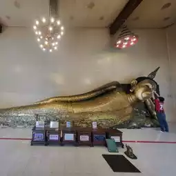 #Visit the temple An ancient temple that has been around since the Ayutthaya period, which was originally called Wat Pa Lelai. It is notable for its large reclining Buddha, 11.95 meters long and 3.60 meters high, enshrined in the temple. It has a Buddha image that is different from other Buddha images in that it is lying on its left side. Originally, this Buddha image was enshrined outdoors, and later a temple was built to cover it in 1981. In addition to paying homage to this reclining Buddha, tourists should not miss paying homage to the ancient Buddha image in the Palilai posture, sitting with legs dangling down, which has been with the temple for good fortune. Location: Tambon Tha Pradu, Sukhumvit Road, Mueang District, Rayong Province
