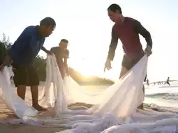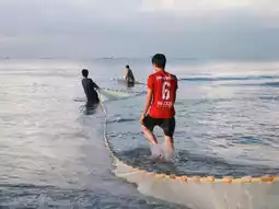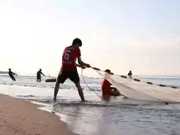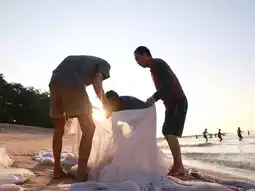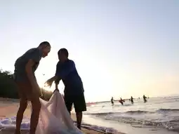 🚙Take a morning trip to the sea at Laem Charoen Beach. Now, there are shrimp eggs called "khee" on the beach, which are used to make shrimp paste. Fishermen in the area have gathered to catch khee. 🏝️