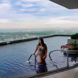 But if you want to experience a really great view, go up and swim. The view is great. You can see the sea far and wide. You can swim and enjoy yourself. Or you can take pictures at many beautiful angles.