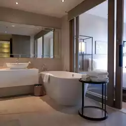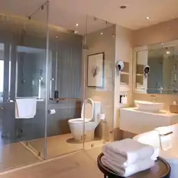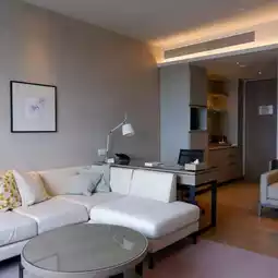 This hotel is considered the only one in Rayong that has a beautiful sea view. We chose to stay in the 1 Bedroom Suites Seaview room, which was very comfortable. There is a bedroom and living room separated. Both corners have a sea view. There is a work desk, a kitchen counter, a walk-in closet, and a large bathroom with a bathtub. It can be said that it is a great place to create content.