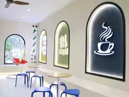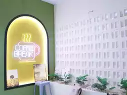 🏖️At Rayong, this cafe is located on Laem Charoen Beach, Rayong. It is a small, cute cafe decorated in yellow and green tones. There is a light sign for taking pictures. The shop is divided into indoor and outdoor zones. In the indoor zone, sit and sip coffee while enjoying the sea view, cool air conditioning. As for the outdoor zone, you can sit outside the shop or sit by the sea. 🏝️