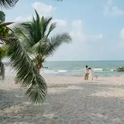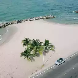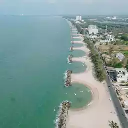 'Saeng Chan Beach' is a landmark of the city. It's not a hidden beach, but it has an atmosphere perfect for peace and tranquility. The special feature of the beach is the wave-breaking rocks, which are spaced apart. When waves flow through the gaps, they create semi-circular shapes like many half-moons stretching along the beach. Along the way, there are shops, restaurants, bars, and cafes available, ranging from local-style umbrella setups to chic spots perfect for content creation. Choose the style you like.