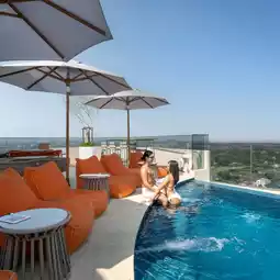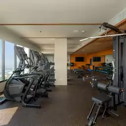 Both a 24-hour fitness center and an outdoor swimming pool on the 25th floor with a great view of the city.