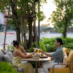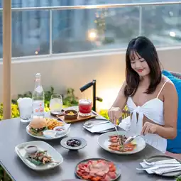 next to the swimming pool. Recommend to come and eat in the evening. The sunset view is very beautiful. It is suitable for having a light drink and enjoying the atmosphere. If you bring your girlfriend, she will definitely be impressed.