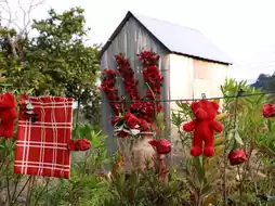 🩷Outdoor, there will be large red roses prominently placed in the flower zone and red roses and dolls on the clothesline for checking in beautifully and enjoying it even more.