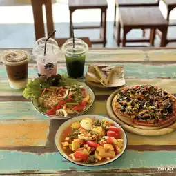 🌳 Krua Krok Mai has a wide variety of food to choose from. We ordered the menu that the shop recommended. It's a charcoal-oven pizza with thin and crispy dough. Eat it with corn salad with salted eggs. It tastes delicious. It's a perfect combination.