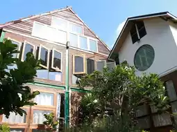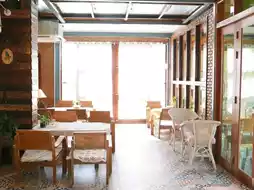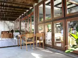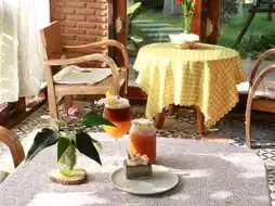 The atmosphere is nice, shady, and warm. I like that there are thin white cloths by the windows to let in the morning light. The light comes down beautifully. And on the opposite side of the shop, there is a sea view. Sit outside and enjoy the cool breeze. It's super healing. 🌊 Or you can sit in the air-conditioned room and sip coffee. 😇