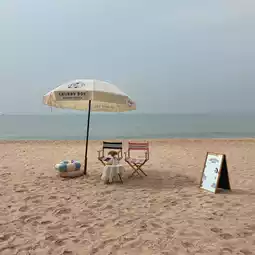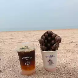 There are Slushy, Hong Kong waffles, toast, fried chicken 🍗. Eating delicious food with a beach atmosphere is so chill.