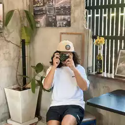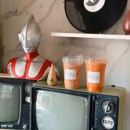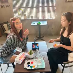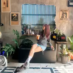 Let's stop by a chill cafe in Rayong. It's a super cool vintage style cafe. The interior of the cafe is made of cement. There are vintage photo corners and plenty of seating areas, both inside and outside. There are also bottle painting activities. 🎨
