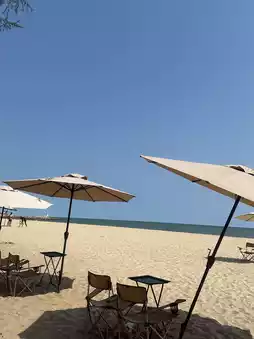 A chilled-out seaside coffee shop. Sit on a camping chair and listen to the sound of the waves while enjoying the cool breeze and refreshing drinks🍹. It's so good! You can sit and relax until the evening and watch the sunset. There are beautiful photo spots with a cool shop sign. I highly recommend it🍷