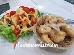 🎈Laem Charoen Seafood Rayong is the origin of fried sea bass with fish sauce for more than 40 years. This menu is unique. Fresh fish, crispy and fluffy, topped with fish sauce, meticulously made. I must say it's really good, very delicious. You have to try it. If you come here and don't come to this restaurant, it's a mistake. This menu costs 490 baht, including other seafood menus. Fresh, clean, delicious food, standard. In the evening, you can sit outside and watch the atmosphere of Pak Nam, fishing boats, and the way of life of the community along the Rayong River. If you come to Rayong Province, come to Laem Charoen. Don't miss Laem Charoen Seafood Restaurant. The shop is open every day from 10:00 AM to 9:30 PM.