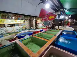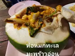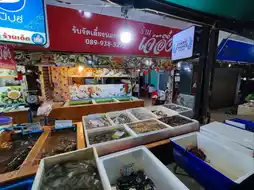 🎈Jae Ueng Seafood, a restaurant with a good atmosphere by the sea in Rayong on Mae Ramphueng Beach. Sit and eat on the beach. Very fresh seafood. In front of the shop, it is still alive. There are almost all kinds of seafood. Sea bass, grouper, blue crab, black crab (sea crab), shrimp, mussels, cockles, mantis shrimp, lobster, fresh, delicious, inexpensive. The shop also gives away 1 plate of fruit and watermelon. The shop is open every day from 07.00 - 21.00. Parking in the parking lot opposite the shop is 20 baht. Pay first and then bring the receipt to receive the parking fee from the shop.
