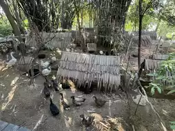 🐓: There are animals for children to see, including chickens 🐔, ducks 🐣, and fish in the pond 🐠.
