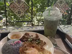 🍹Drinks include tea, coffee, and fruit juices. 🍰Snacks and bakery items include Honey Toast, cakes, and Thai desserts. 🍛🍽There is a wide variety of food to choose from, including authentic Thai dishes and fusion dishes, such as Butterfly Pea Rice with Stir-fried Sea Bass with Chili Paste and Lotus Leaf Miang Kham. And menus from organic eggs from chickens that the shop raises itself 🐓🍳