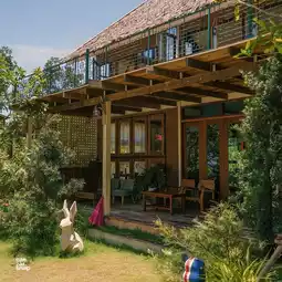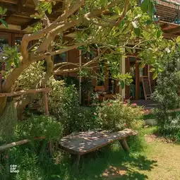 🌿 Naemita Cafe & Resort, a sea view cafe located on Mae Ramphueng Beach, with a nice atmosphere, decorated in a wood and nature theme, with both indoor and outdoor seating, lots of photo spots, and many delicious drinks and cakes, including shrimp paste fried rice and lasagna. Opposite is the sea, sit on the 2nd floor and enjoy the beautiful sea view.