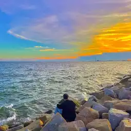 Chilling by the sea, super healing🧡🌊