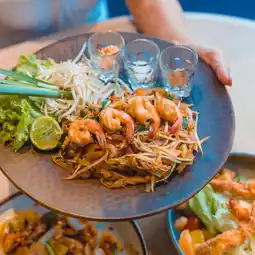 For the chicness, it must be given to the restaurant here. It is decorated cutely. It serves breakfast and dinner. It is comfortable to sit and take pictures. And the food I ordered was delicious too. I like the Pad Thai with fresh shrimp and the crispy shrimp salad.