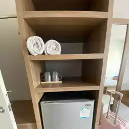 Atmosphere/Location - It is a hotel located in the center of Rayong City. Easy to travel, on the side of the road, near tourist attractions, just a few minutes away. The room is spacious, not narrow, clean, with a refrigerator, shower cream, shampoo. Although there are only a few floors, there is an elevator.