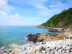 If you have the chance to visit Khao Laem Ya in Rayong province, I highly recommend coming in the morning or evening when the sun isn’t too harsh. In the evening, you can enjoy the sunset view, but I visited in the morning. After parking at the entrance, I walked in to take photos and admire the beautiful sea views. There’s a wooden bridge to stroll along and a white lighthouse that’s perfect for photography. You can also camp here as there’s a designated camping area available for just 30 THB per person. Entrance fees are 40 THB per adult for Thai nationals and 30 THB per car. From this spot, you can also visit nearby attractions like Mae Ramphueng Beach.