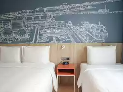 The hotel is conveniently located on a main road, making it easy to access. We stayed in a family room with one large bed and one small bed. The special feature of this room is that you can walk straight to the swimming pool through the back door.