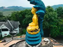This temple was built by Father Fueng Chotiko. It is a temple that practices meditation in the vein of Luang Pu Man Phurithatto and is the “land of the Naga of the eastern region”. It is notable for its large Ubosot, the Naga Parak posture, and the Phra Chedi Sri Thammasatit, which comes with a seven-headed Naga for worship for good fortune.