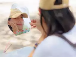 You can choose from painting on hats, mirrors, coasters, fabric, and more. Pick whatever suits your fancy! Once you have your materials, you can sit by the sea and start creating. The atmosphere is absolutely wonderful. If you're feeling tired or bored, coming here to experience something like this is truly refreshing.