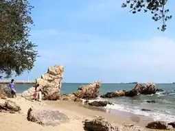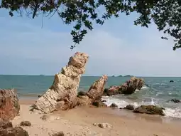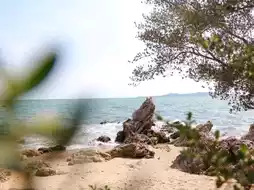 Hua Laem Beach is a small beach with shady trees and rocky corners and trees by the sea. The atmosphere is good. 😍😍