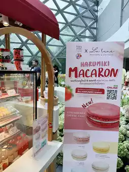 Or if you prefer macarons, biscuits, and popcorn, they also have take-away options. You can take them home or buy them as souvenirs, which is very convenient. #TulipGarden #PTTLNG #RayongTulipGarden #RayongTravel #RayongReview
