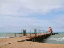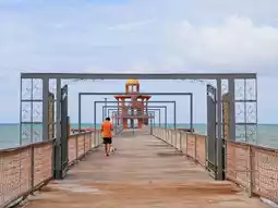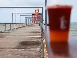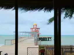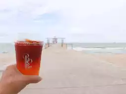 🚙Take you to a seaside cafe 💙Beaver on The Beach 💙A newly opened cafe on Mae Ramphueng Beach. The highlight is a long bridge with an orange tower in the middle of the sea for checking in and taking beautiful photos. ☕️The shop's menu has both Coffee and Non-coffee drinks 🍵Matcha and many other menus.